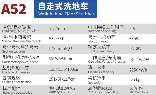 -刷盤(pán):電子控制,自動(dòng)裝卸刷,使用更方便;刷盤(pán)運轉時(shí)牽引機器移動(dòng),降低蓄電池能量損耗,續航時(shí)間更長(cháng)久